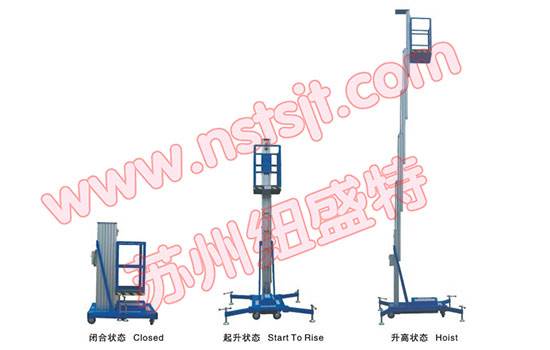 1、單組高強(qiáng)度鋁合金桅柱升降,整機(jī)重量輕,機(jī)動(dòng)性好,適合單人操作