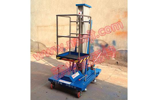 單桅柱式升降平臺(tái)采用高強(qiáng)度優(yōu)質(zhì)鋁合金材料,具有造型美觀、體積小、重量輕、升降平衡、安全可靠等優(yōu)點(diǎn),廣泛用于工廠、賓館、餐廳、車站、機(jī)場影劇院、展覽館等場所,是保養(yǎng)機(jī)具、油漆裝修、調(diào)換燈具、電器、清潔保養(yǎng)等用途的安全伴侶。